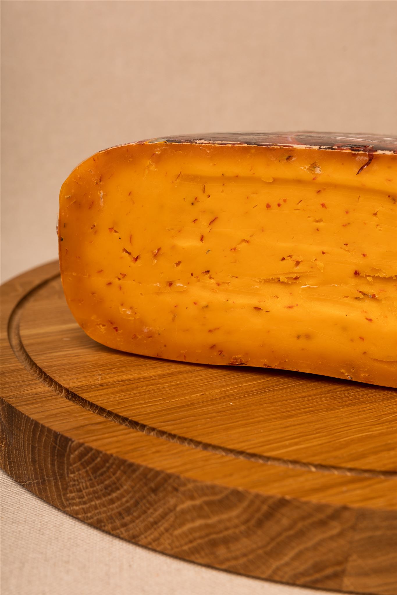 Gouda holenderska z chilli to wyjątkowa wersja klasycznego sera gouda, która łączy w sobie kremową, gładką strukturę z pikantnym akcentem. Wytwarzana z wysokiej jakości mleka krowiego, ta gouda charakteryzuje się intensywnym, złotym kolorem oraz delikatnie elastyczną konsystencją. Jej smak jest zrównoważony i wyrazisty, z dominującymi nutami masła, orzechów oraz chili, które wprowadzają pikantny, ożywiający akcent. Dojrzewająca przez kilka miesięcy, gouda z chilli ma wyrazisty charakter, który zadowoli zarówno miłośników serów, jak i poszukiwaczy nowych smaków.